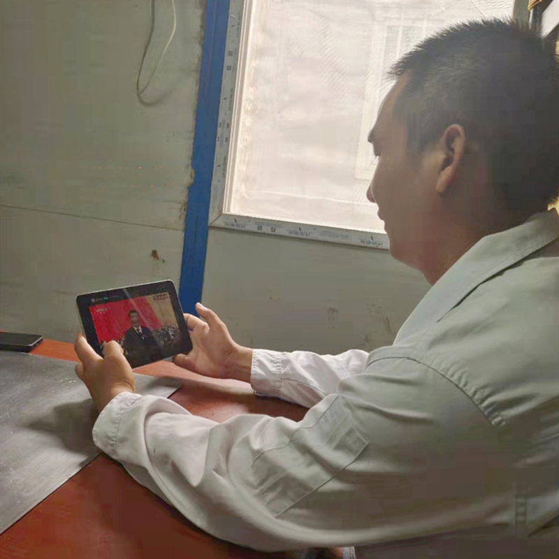 11.福建青拓特钢现场职工寓目党的二十大开幕盛况